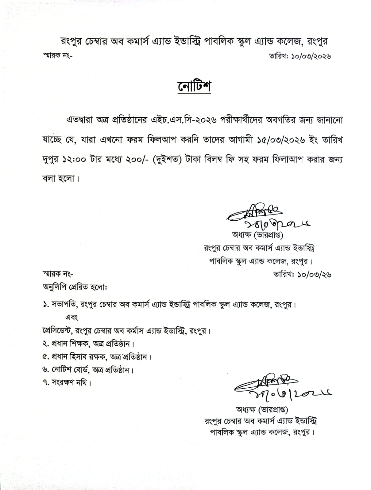 এইচএসসি-2026 পরীক্ষার্থীদের বিলম্ব ফি সহ ফরম ফিলআপ